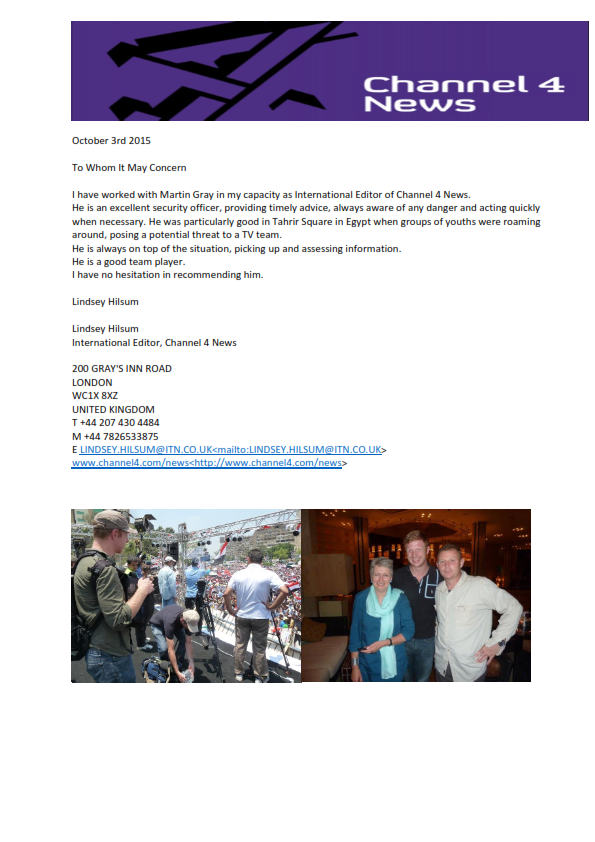 As a Media safety adviser role is to be responsible for ensuring the safety and security of media teams and journalists working in various environments, including high-risk or hostile areas. Their role often includes planning safety protocols, advising on risk management, and supporting crews during coverage of challenging events such as conflicts, natural disasters, or protests. Has involved providing extractions from conflict areas to safe areas to allow submit their story before returning into conflict areas.
